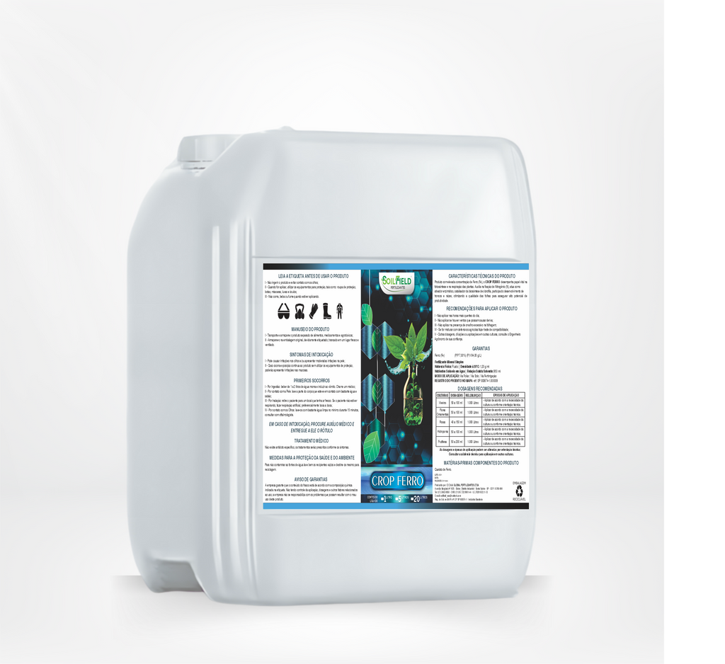 O CROP FERRO é um fertilizante com alta concentração de Ferro (Fe), essencial para o metabolismo vegetal.