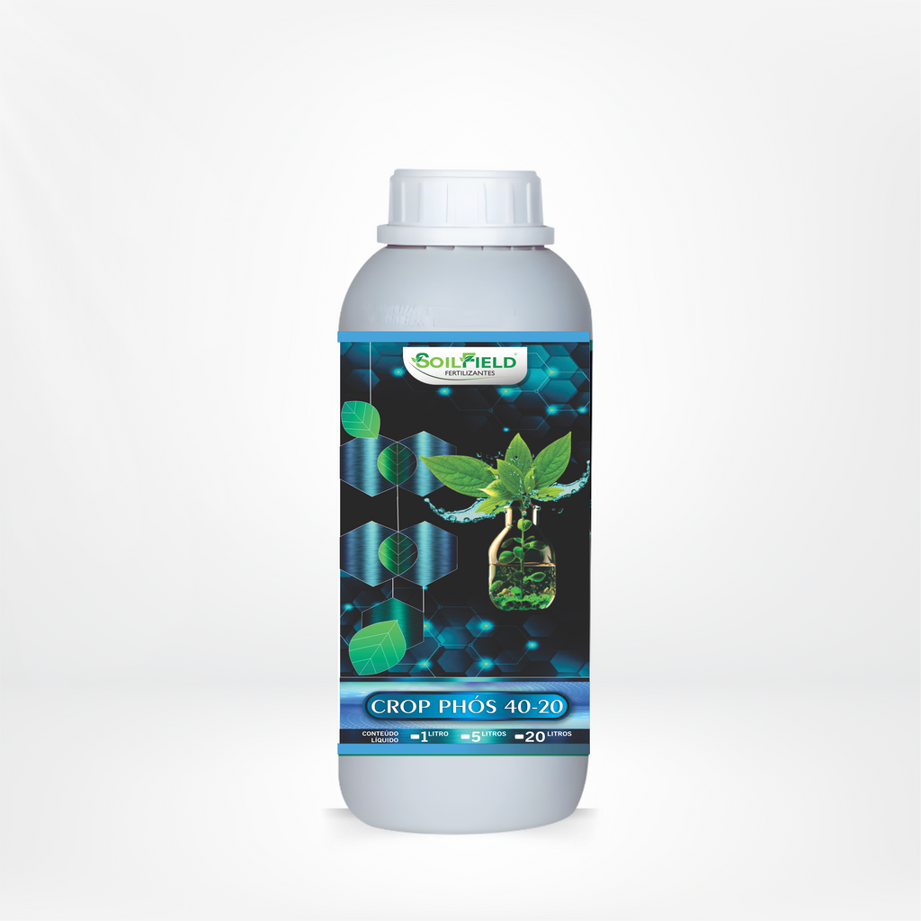 O CROP PHÓS 40-20 é um fertilizante líquido com altas concentrações de Fósforo (P) e Potássio (K),