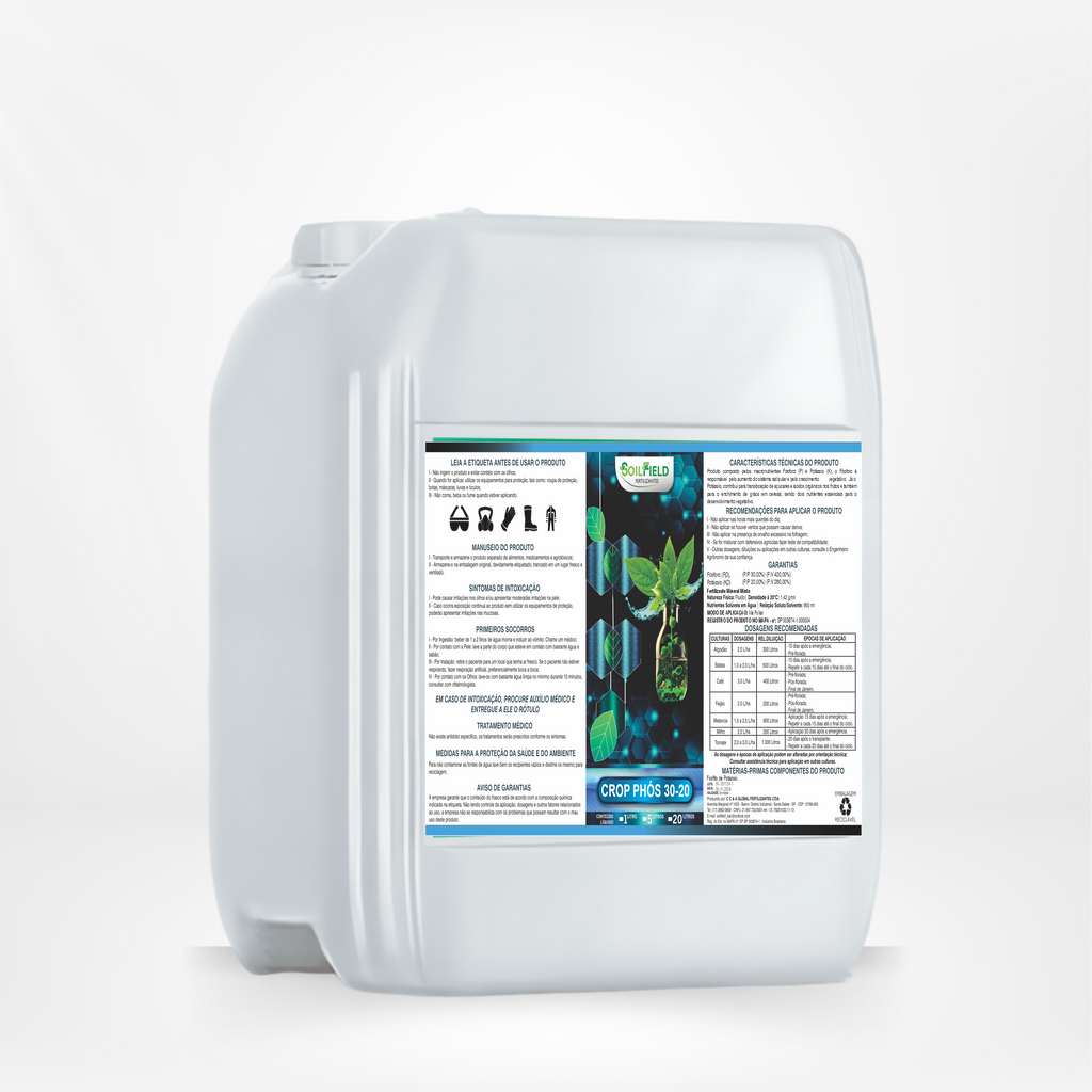 CROP PHÓS 30-20 é um fertilizante mineral fluido altamente concentrado em Fósforo (P) e Potássio (K), dois macronutrientes essenciais ao desenvolvimento vegetal.